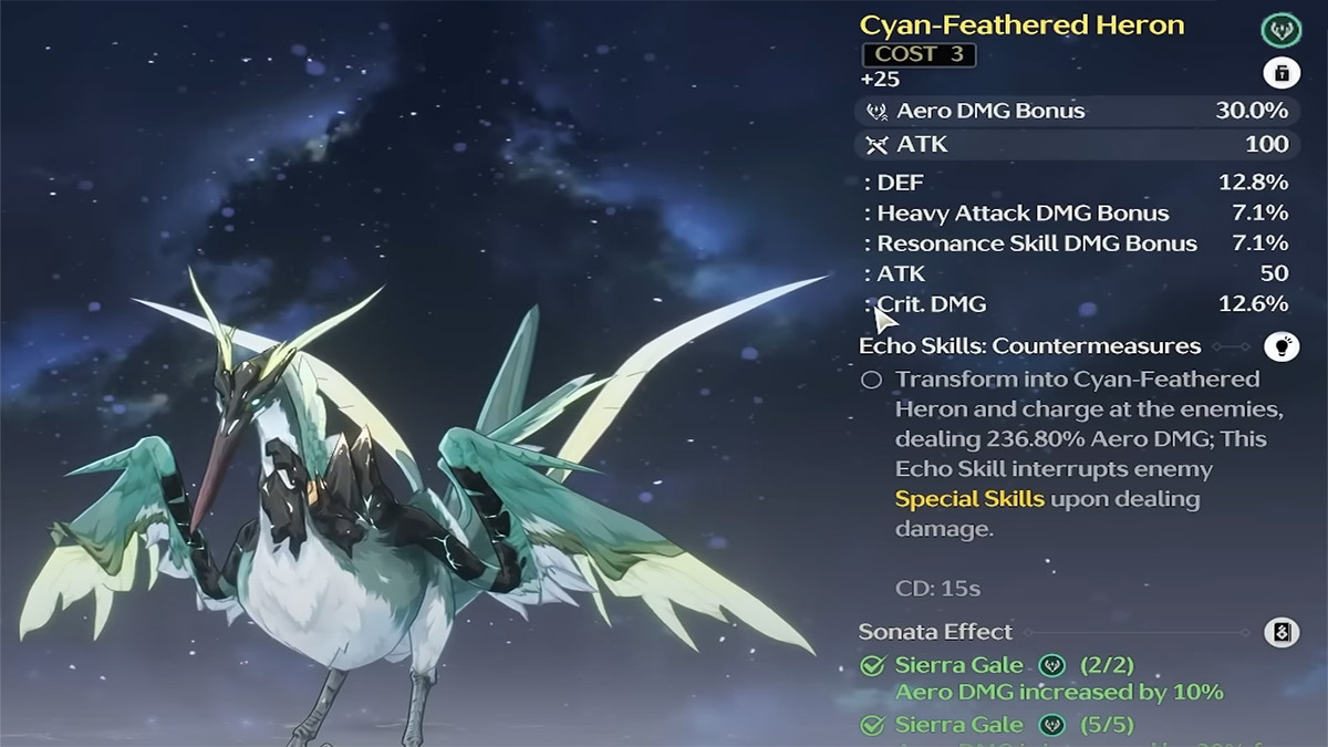 - Cyan-Feathered Heron: A decent option that deals great Aero damage and interrupts enemy Special Skills.
