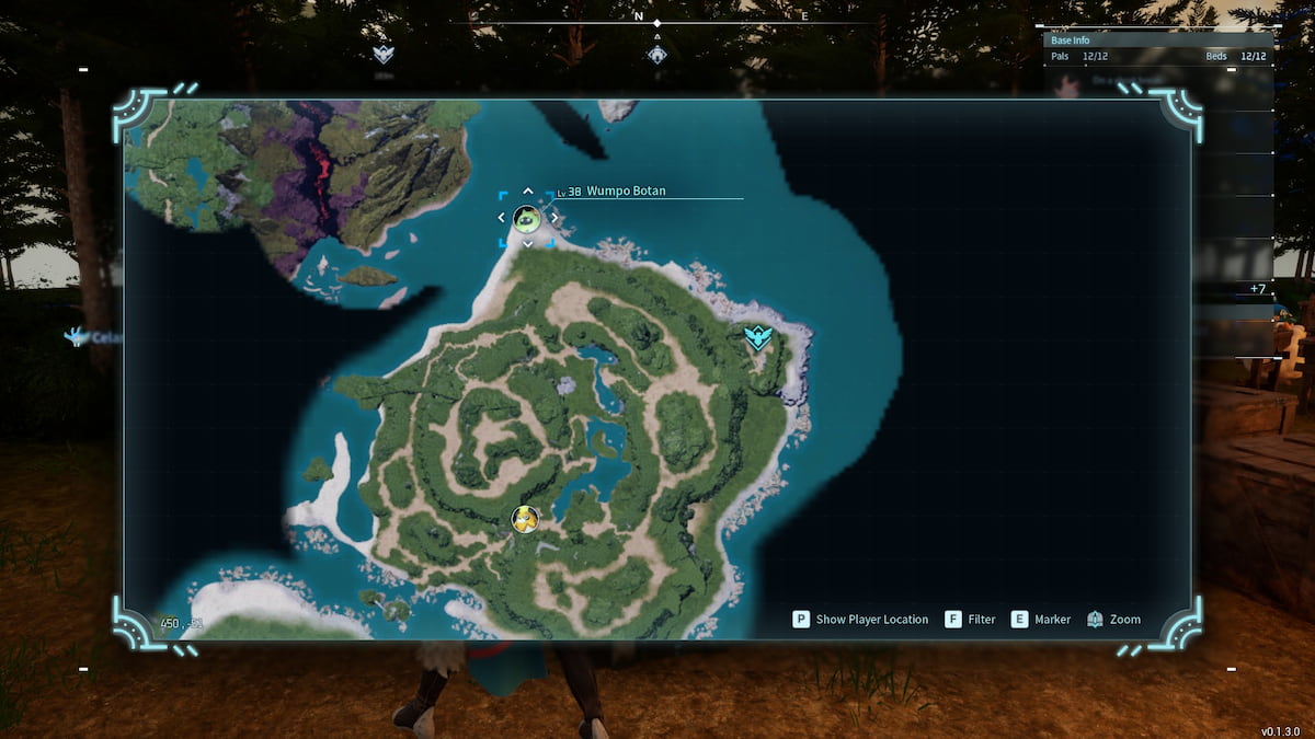Wumpo Botan is the Grass-type version of the icy Wumpo, sharing similar Partner Skills and nearly identical Work Suitabilities. You can grab this Pal in two locations. The first is the Eastern Wild Island, specifically at coordinates 450, – 51, where it’s a Level 38 Alpha Pal. The second, you’ll need to fly to, as it’s located at the No. 2 Wildlife Sanctuary. The closest fast-travel statue is the Forgotten Island at -543. -28.