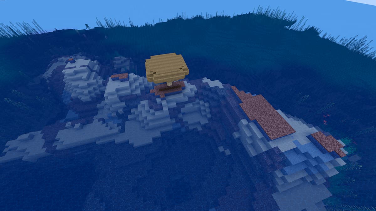 You’ll have to travel quite the distance to reach this giant mushroom island. However, it’s worth the trip. It’s one of the biggest mushroom biomes I’ve ever seen, and there’s plenty of cool stuff surrounding the island, like a Water Temple right off the shore and some Shipwrecks not too far out either.