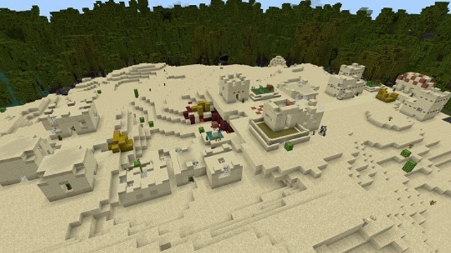 Not only that, but the mangrove swamp completely encloses a small section of desert, which features a full zombie desert village! This is certainly one of the most unique world generations you'll see, and makes for a cool (albeit dangerous) home base.