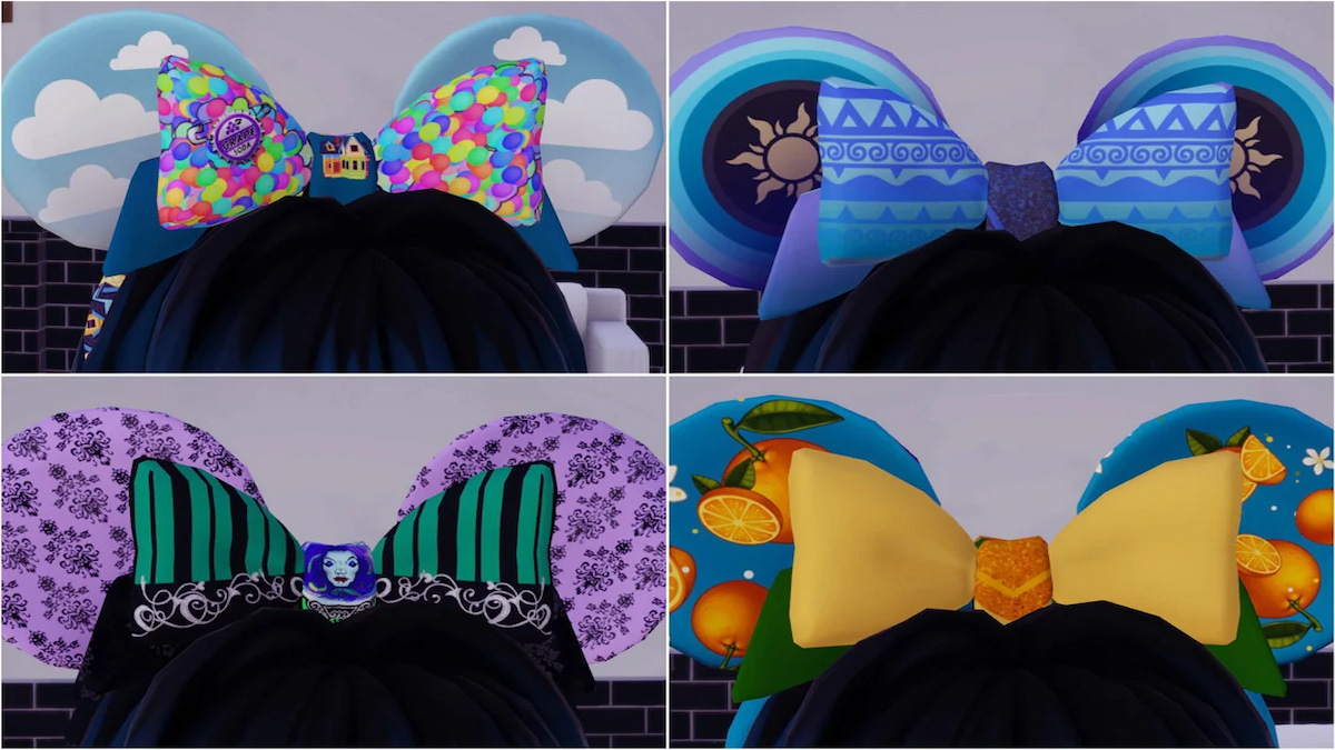 Even though most of the designs I encounter are dresses, these Themed Bow & Ears mixed things up and impressed me just as much. Each of them is themed for a particular Disney movie or pattern and is carefully decorated to account for every little detail. The UP and Haunted Mansion ones are my very favorites, and would look great with other themed clothing.