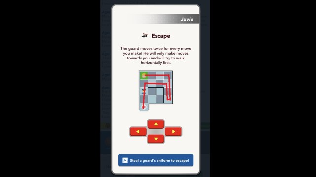 There’s no Get Out of Jail Free card in BitLife prison. Instead, you’re reduced to two buttons: Age and Prison. As such, you’ll have to go to Prison -> Escape to start your attempt. Once you do, you’ll receive a message confirming that you want to try escaping from prison, which you can agree to or cancel and stay in behind bars. This is because a failed jailbreak ends up increasing your sentence.
