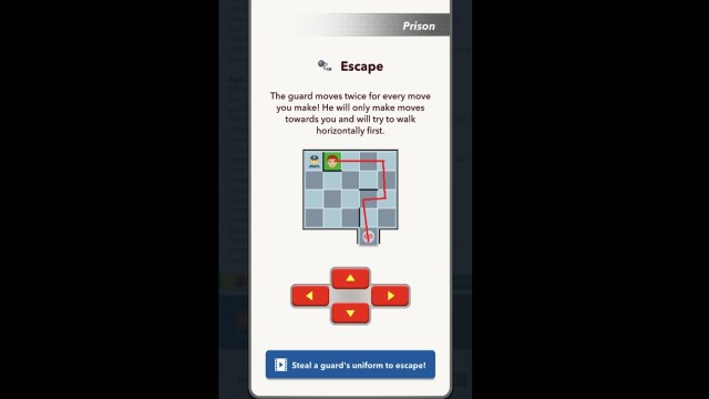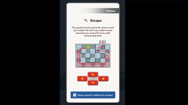 When trying to break out, you can watch an ad for a guard’s uniform. While I hate watching ads, and I’m sure you do, too, this simple option lets you walk right out of the clink. However, this option is available only once per life, so if you get caught again, you have to escape by playing the mini-game.