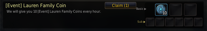 For every hour you’re logged in, you earn 10 Lauren Family Coins — and can garner up to 50 coins per daily reset. Then you simply claim these accumulated coins from your Rewards tab (the default hotkey is “Y”).