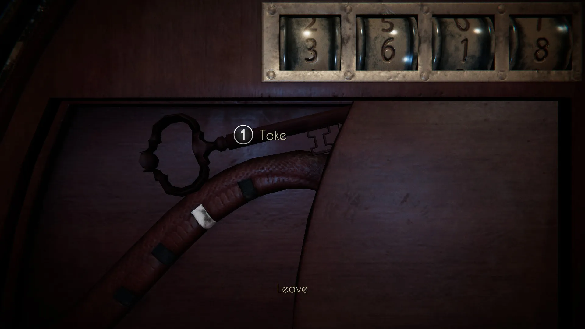 Now that you have the key, you’ll see you have the option to unlock the door. However, it won’t be as easy as simply putting the key in the lock. Remember that the teeth at the end can be moved. Click the unlock option, and take a closer look at the lock hole.
