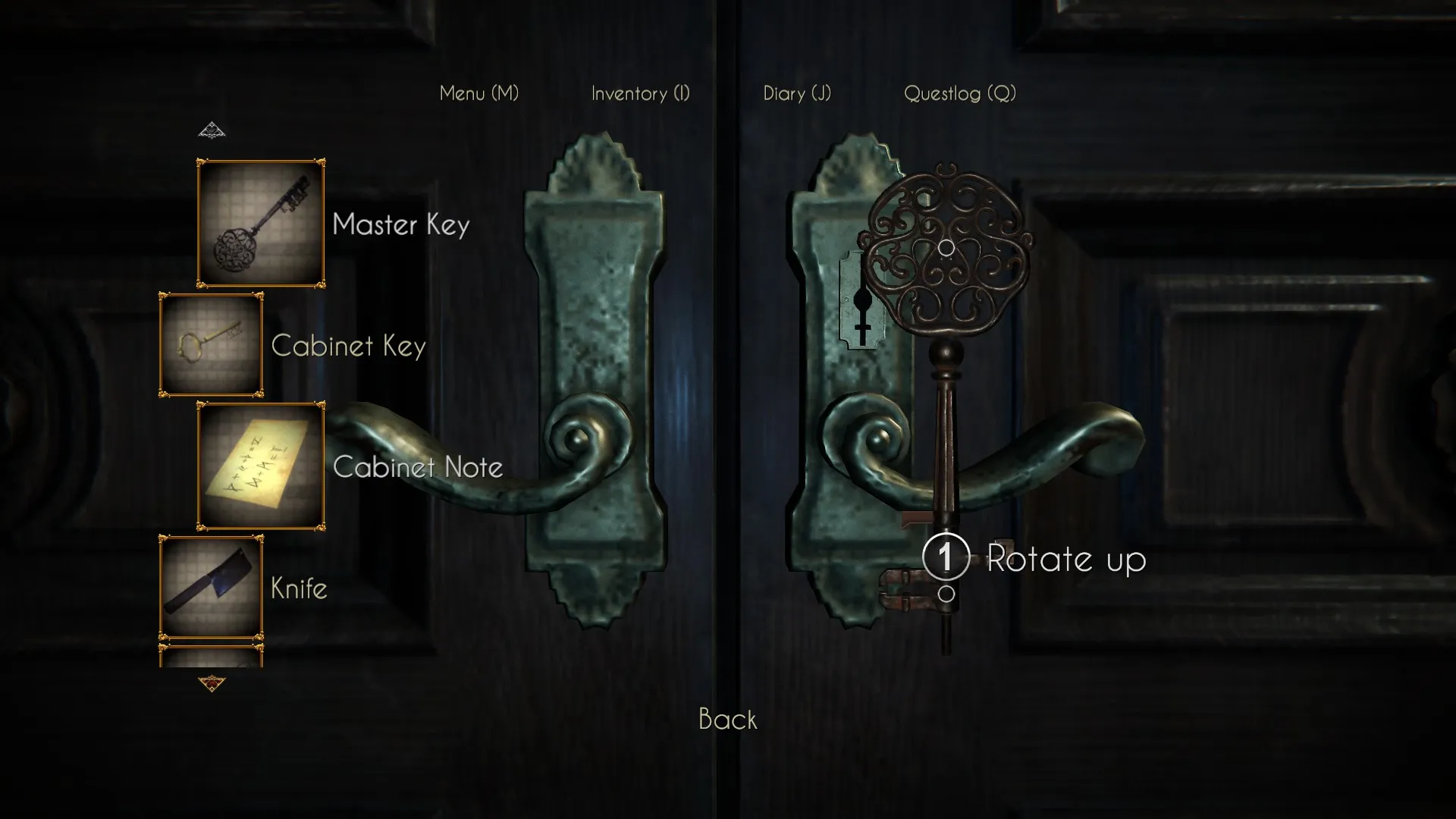 You won’t be able to open this until you find the proper key. This key can be manipulated. Take a look at the keyhole in the master study door, and then adjust the key to make it fit.