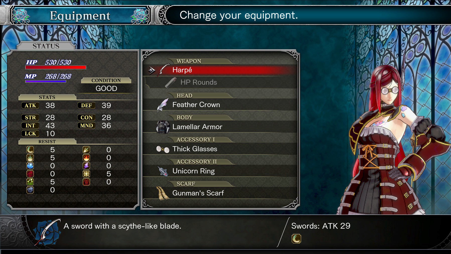 Of all the early game swords I’ve used, the Harpe is by far the best. It’s also relatively easy to come by and deals respectable damage to almost everything Bloodstained can throw at you.