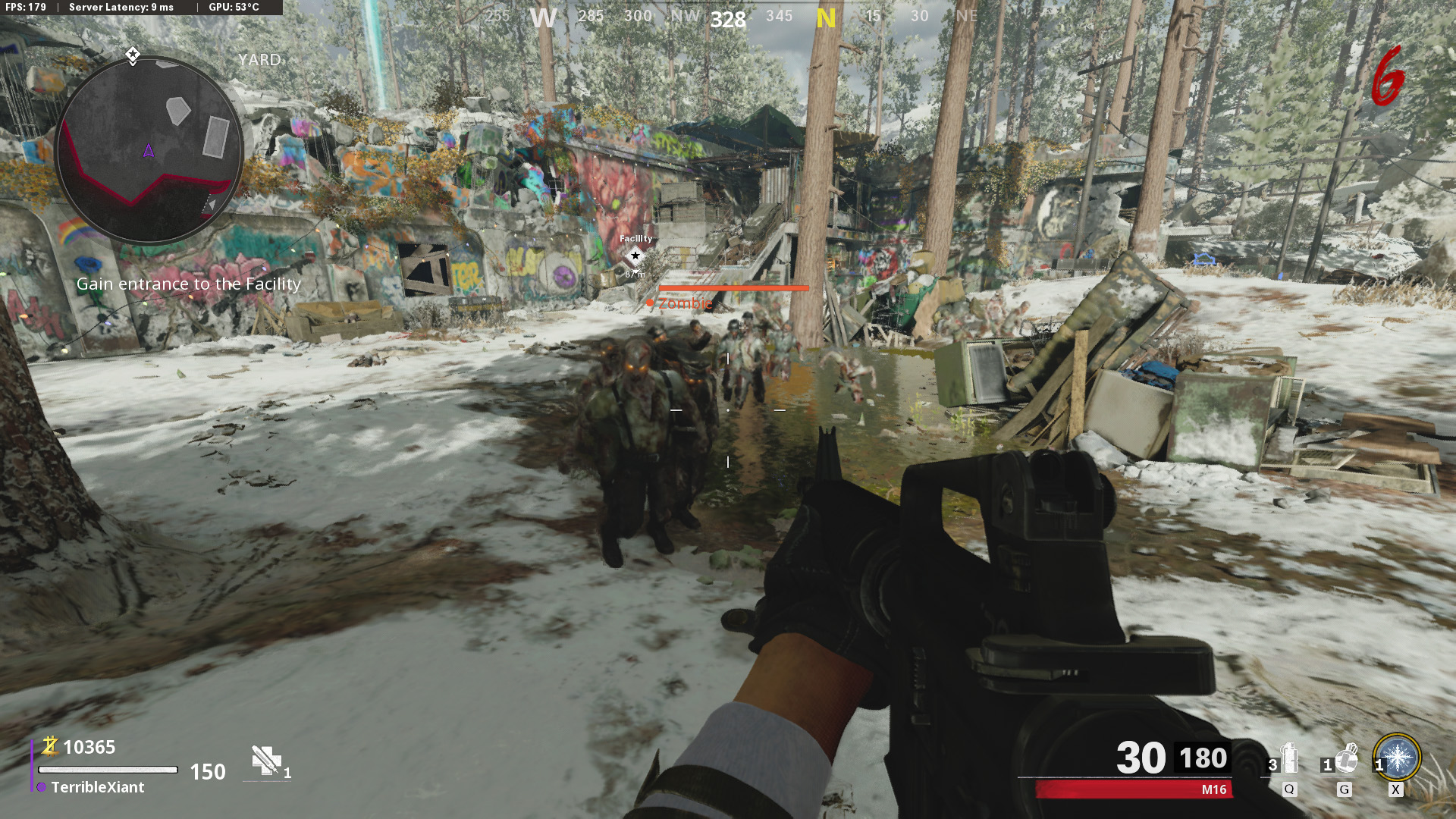 In Cold War’s Die Maschine map, the best place to learn to build and maintain a train is the starting area. Wait for all the zombies to climb over the fence or out of the ground, then start moving in a circle around the trees. Steer clear of going around the tank, as in later rounds. It’s liable to get you killed.