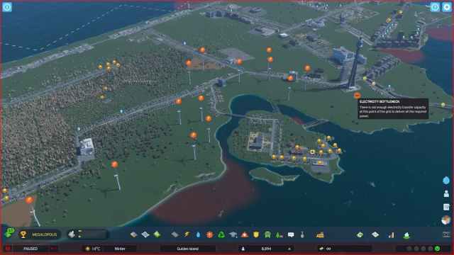 Electricity Bottlenecks are caused by your Power Lines or Electric Cable reaching capacity and no longer being able to meet the electricity demands of your city. So, while you might be producing enough energy, your infrastructure isn’t being distributed as needed. As such, the only way to fix a bottleneck is to reinforce your electric grid with Transformer Stations and Power Lines.