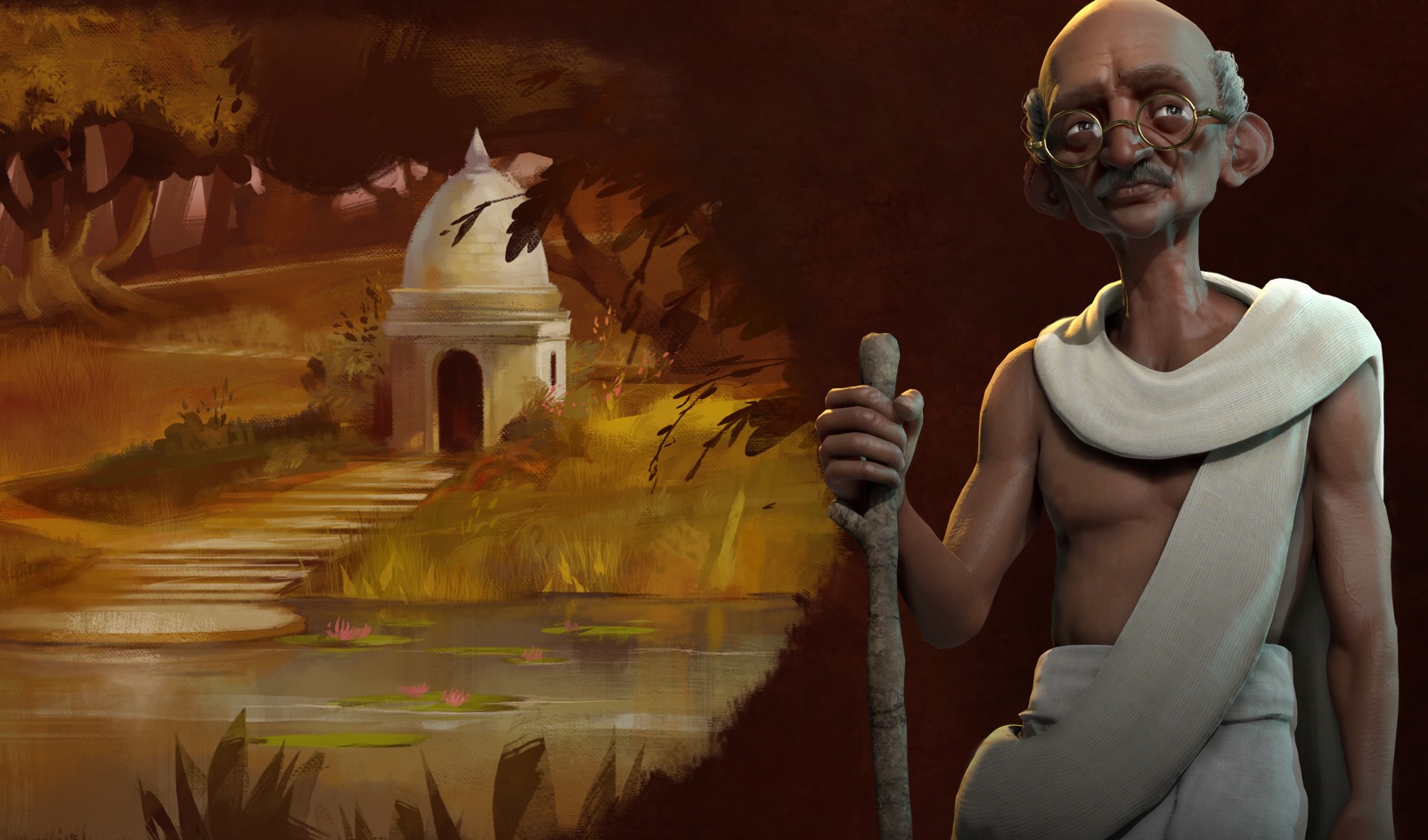 His passive resistance movements inspired his special ability in-game called Satyagraha. For each civilization that India meets, that has founded a religion and is currently living in peace, India gets a substantial bonus in faith. Any opposing civilizations fighting India receive a happiness penalty for fighting against Gandhi.
