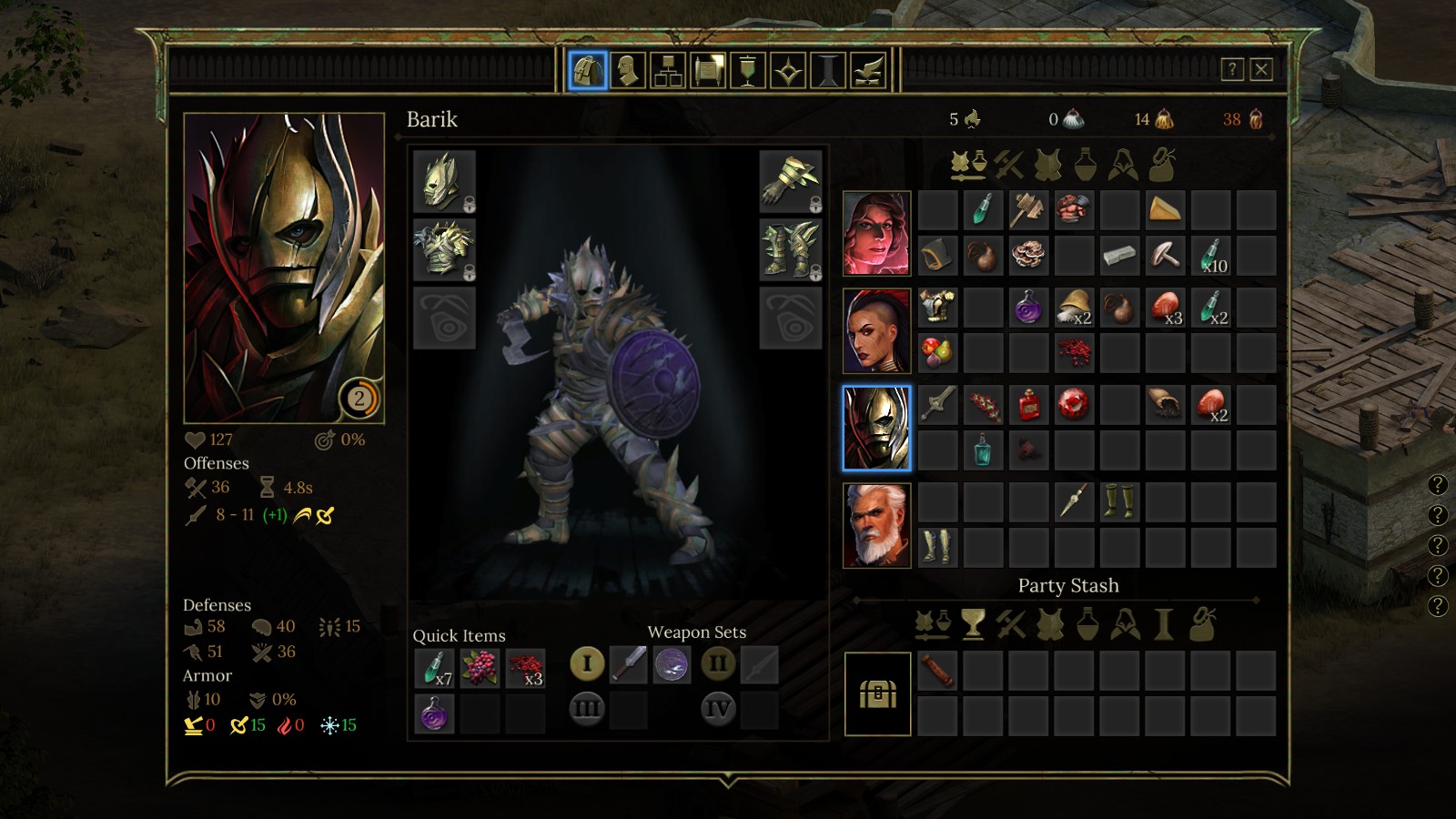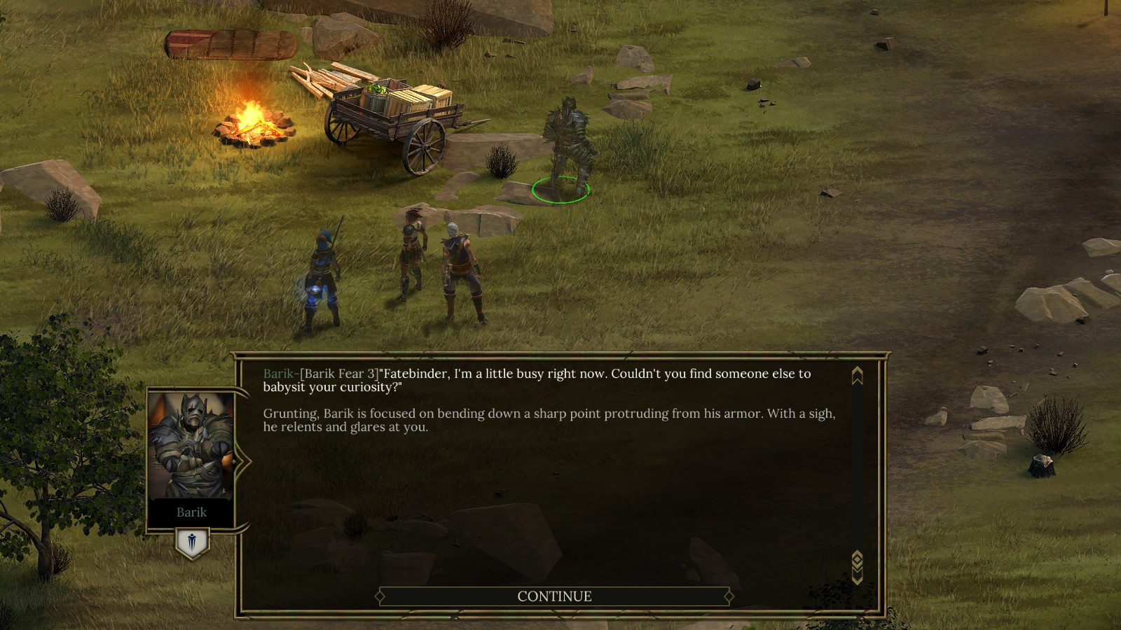 Barik has obvious nods to Vhailor, the living suit of armor powered by the force of his devotion to law from Planescape: Torment, and serves as the most military-minded and frontline melee-focused character in Tyranny. He can be found and recruited in the Disvaored camp near Iron Marshal Erenyos.