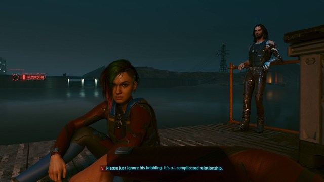 She’ll lead you into the cabin, then, after discovering the power’s out, you’ll need to turn on the generator outside. When you return, Judy will be in the bathroom, flashing back to losing Evelyn. After sitting down to console her, things get a bit emotional. You can select the kiss dialog option to enter a steamy sex scene if you’re playing as female V. The “Lean away” selection stops the whole thing in its tracks, and the “Comfort” option to friend-zone Judy then and there.