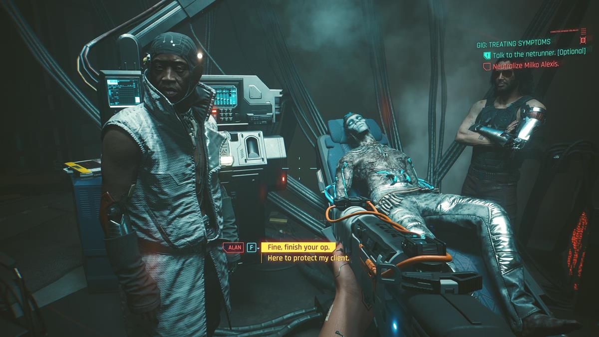 Past the boss’ chamber, you’ll stumble upon Miko Alexis, who’s all but dead. A netrunner, Alan Noel, seems to have plans for him. You’re presented with a decision on how you’ll conclude the Cyberpunk 2077: Phantom Liberty Treating Symptoms gig: