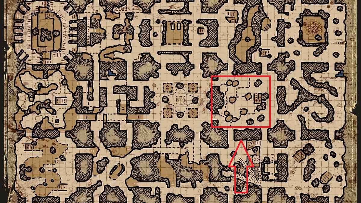 You can find the Stone Graves module A inside the initial Goblin Cave in the northern central part of the map. You’ll find it right between the Cave Tunnels and Cavern Lake, or simply go in the northern direction from the central Goblin Maze.