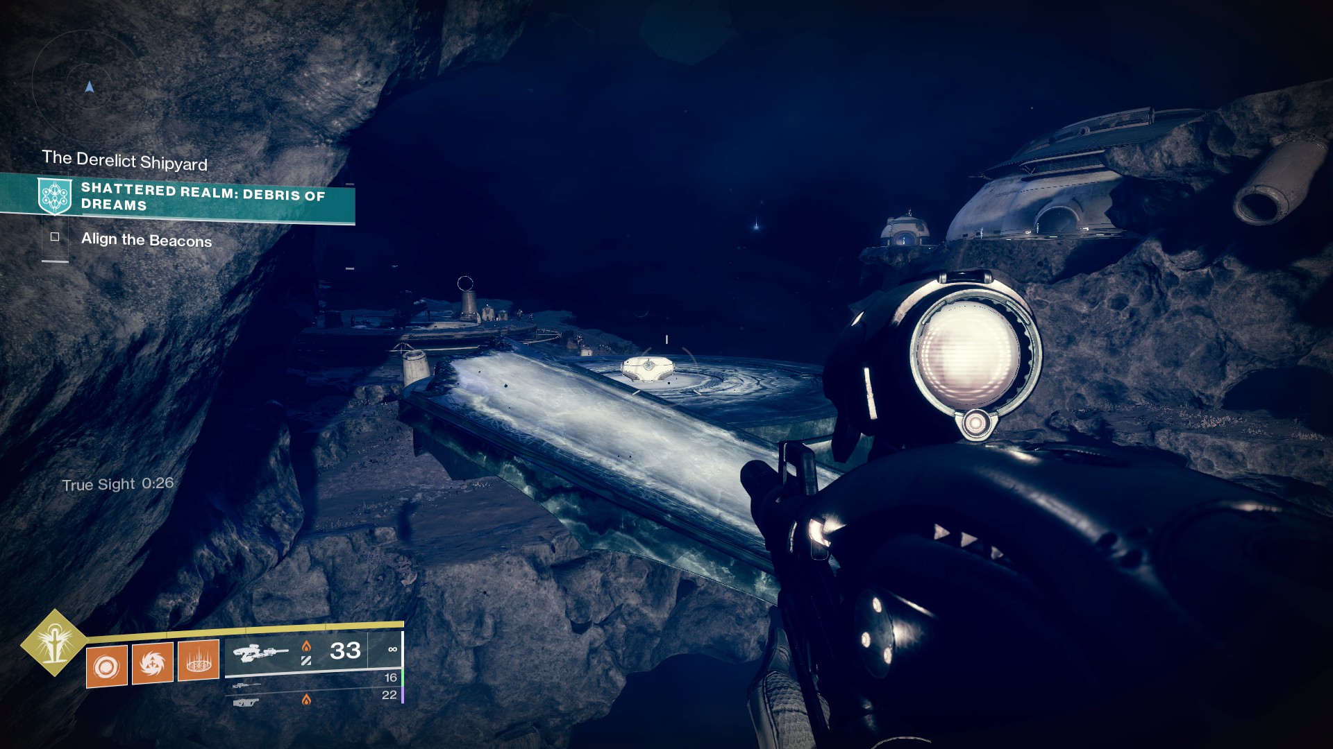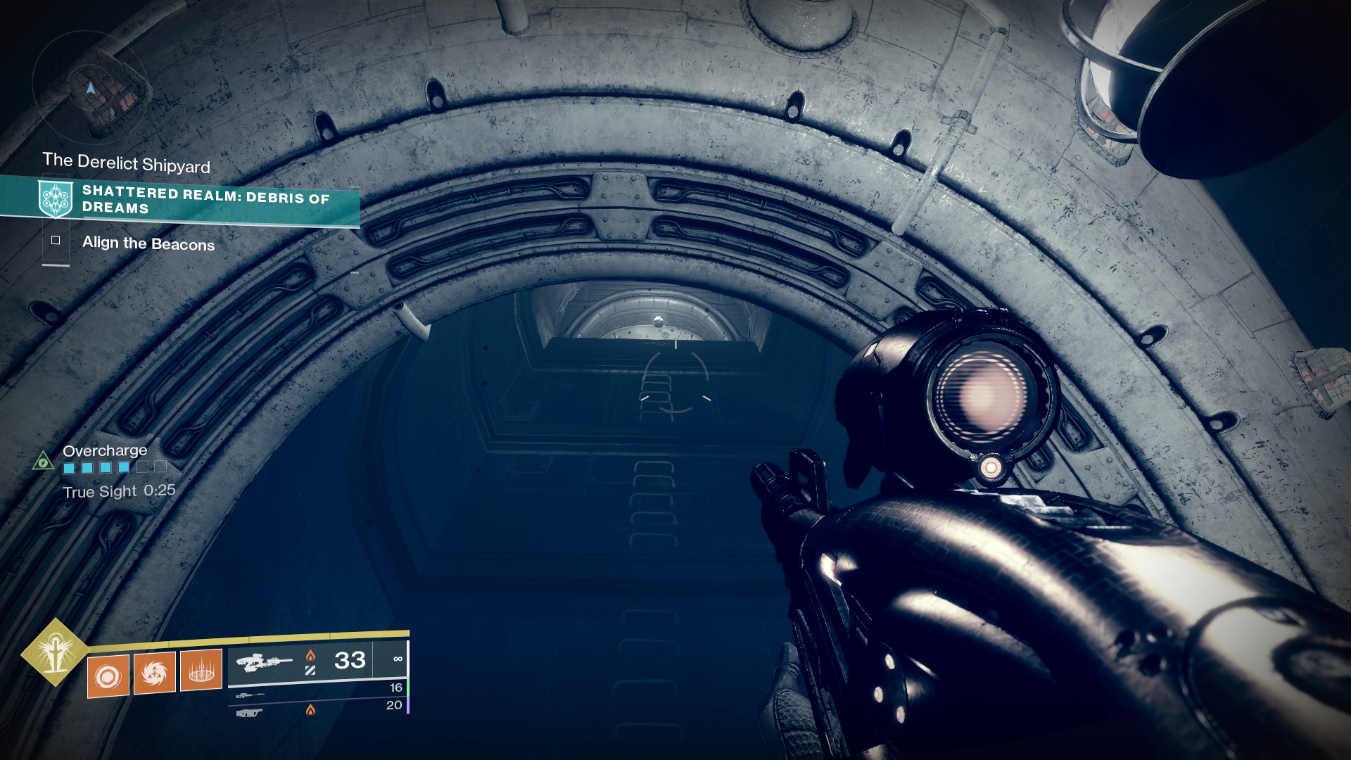 Exit the beacon room from where you first came in and turn left. The True Sight pillar is now active, so pick up the ability then return to the beacon room. Head into the shaft with the ladder in it.