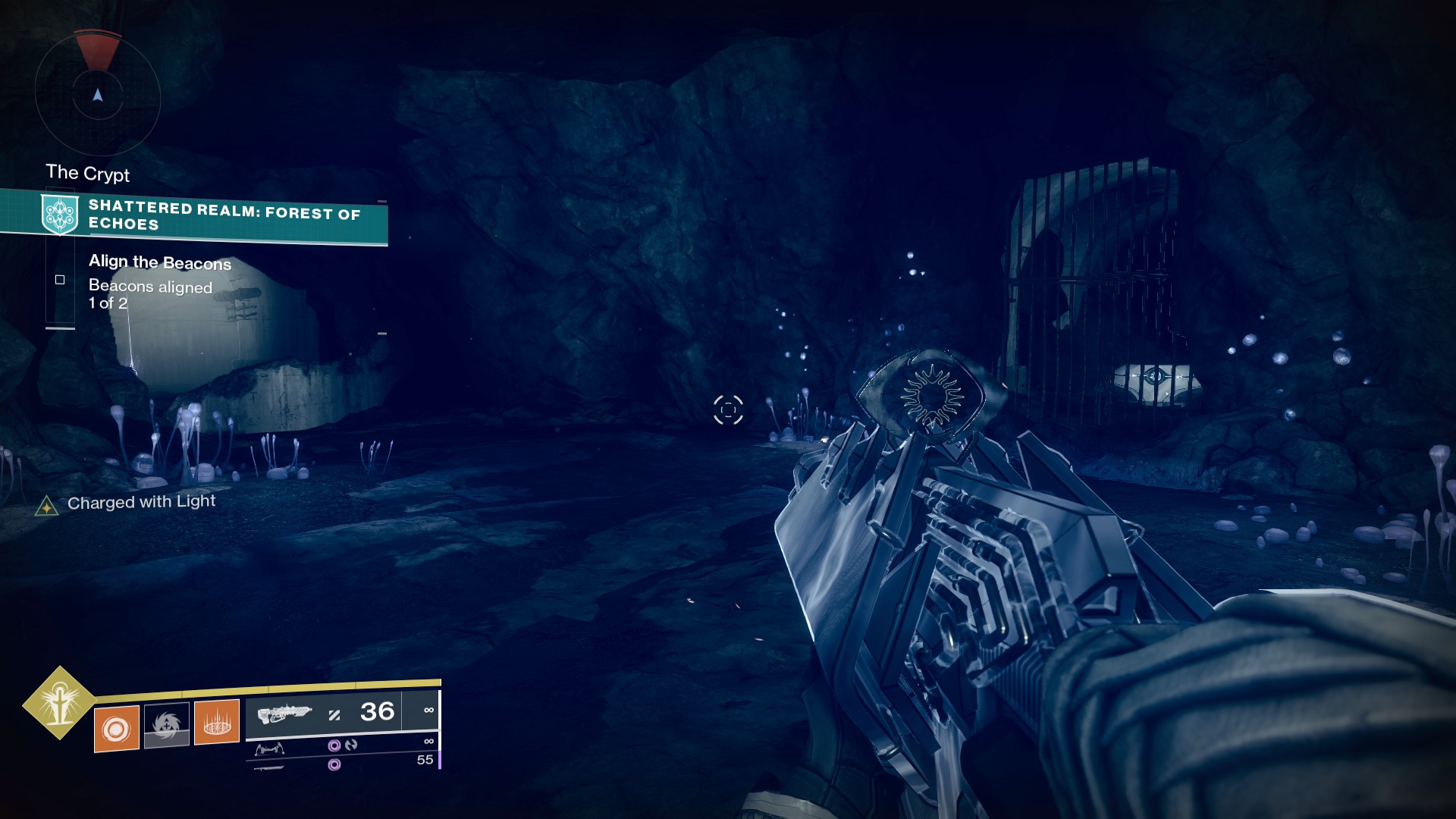 Activate the church Beacon, then return to the crypt, activate Barrier Breach, and head inside. The chest will appear to be locked behind bars, but you can turn left and follow the hallway around to find it in an alcove.