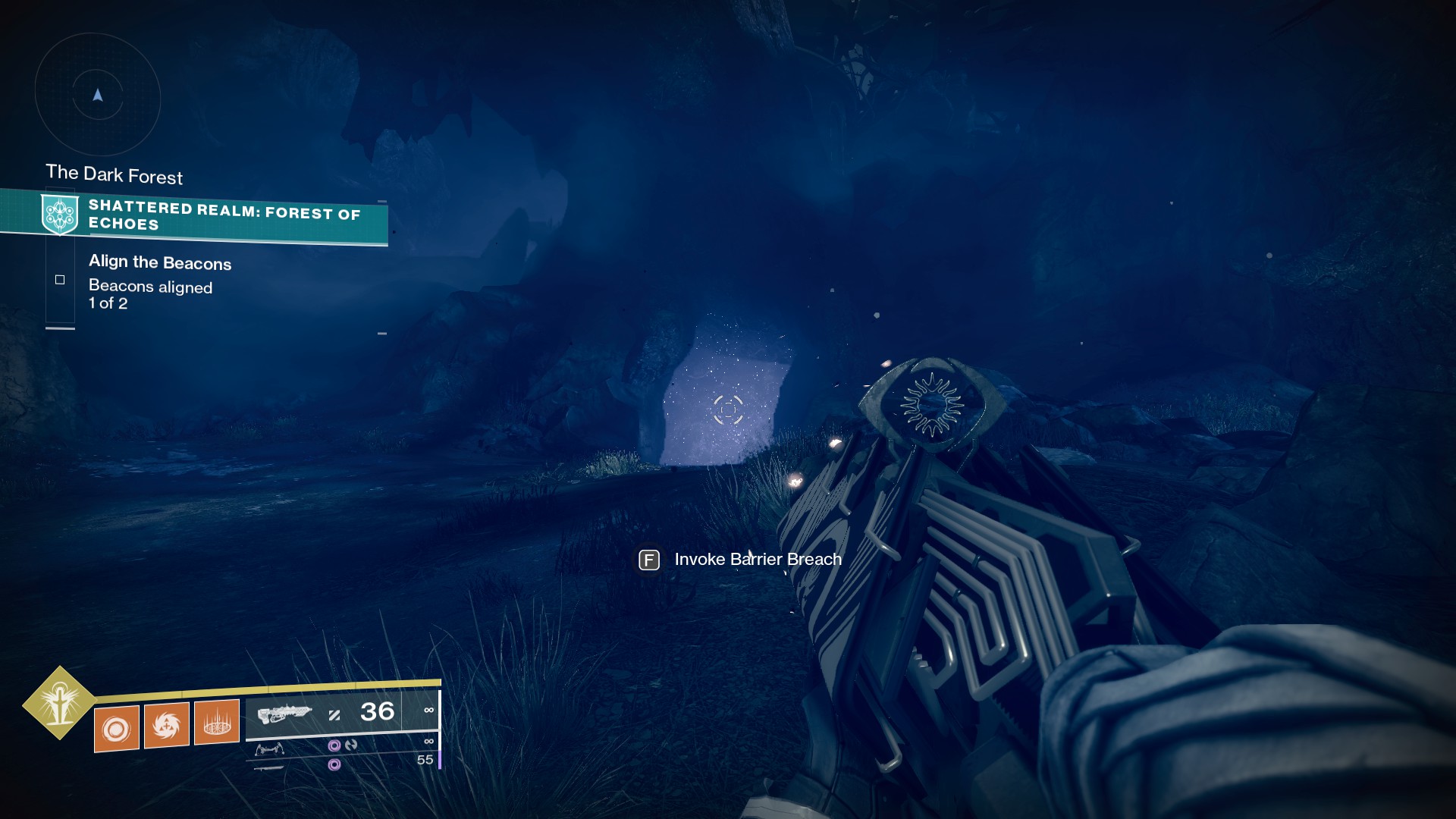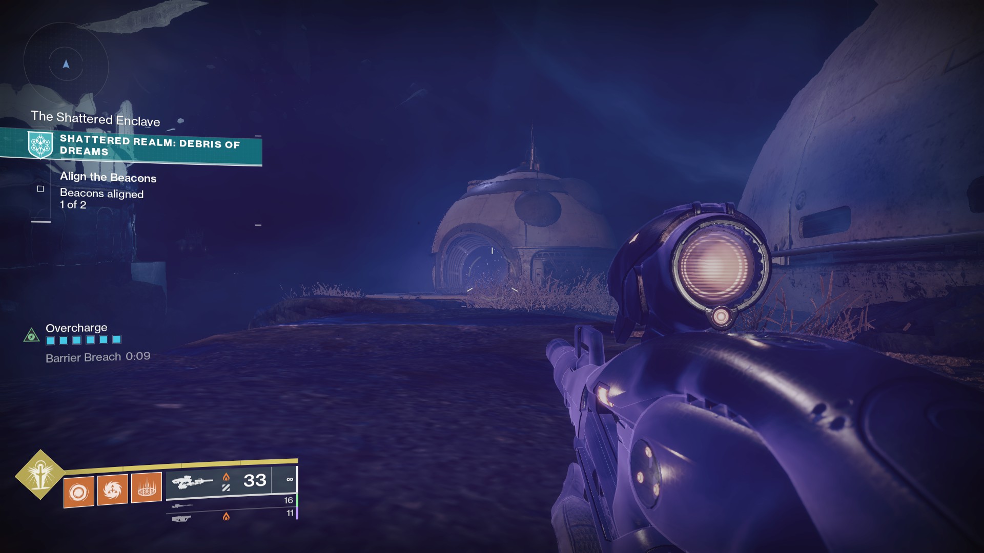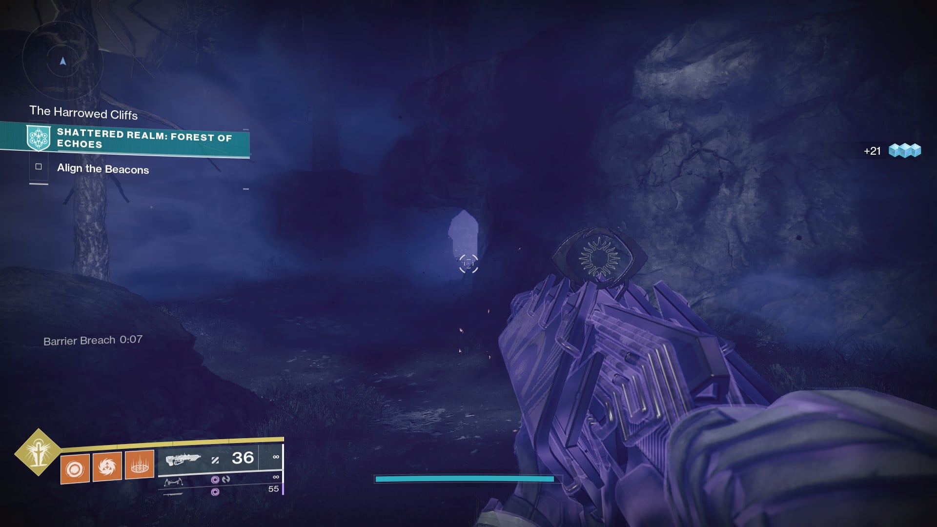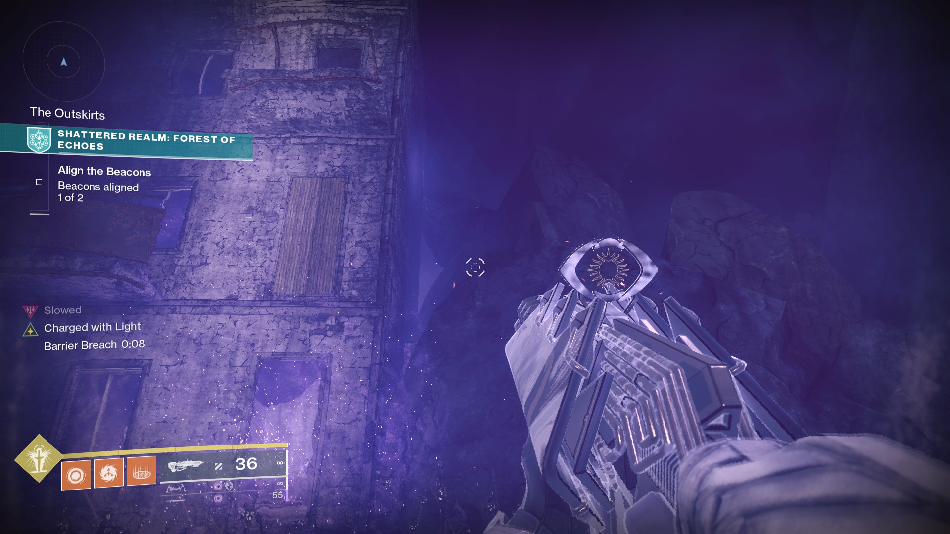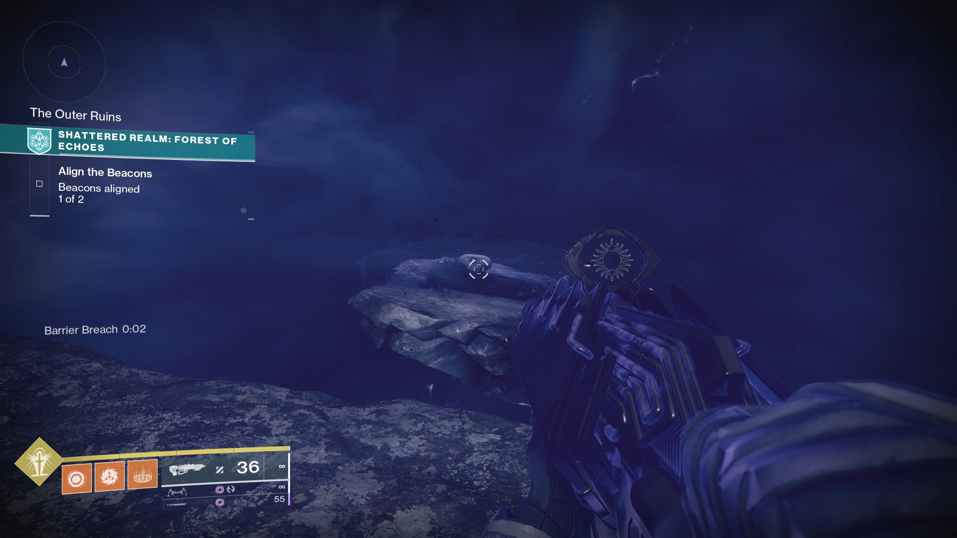 You’ll need to move through a slow zone, hop up onto small outcropping, then to the second level. The Barrier Breach pillar lives just behind where you climb to. Go through the barrier to find the mystery chest on a platform a short distance away.