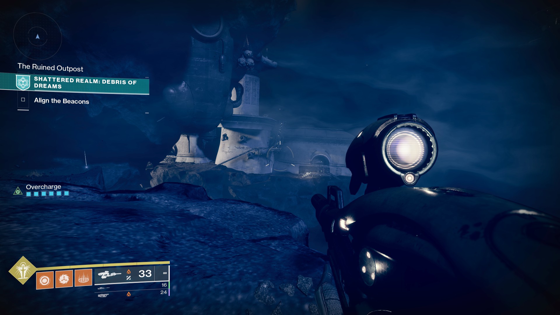 Return to the boss room and turn immediately right from the teleporter until you see a lonely floating island with a yellow-lit building in the distance. To reach it, you’ll need to be a top-tree Dawnblade Warlock, a Titan using Lion Rampants and Thundercrash, or a Hunter who can Worldline skate.