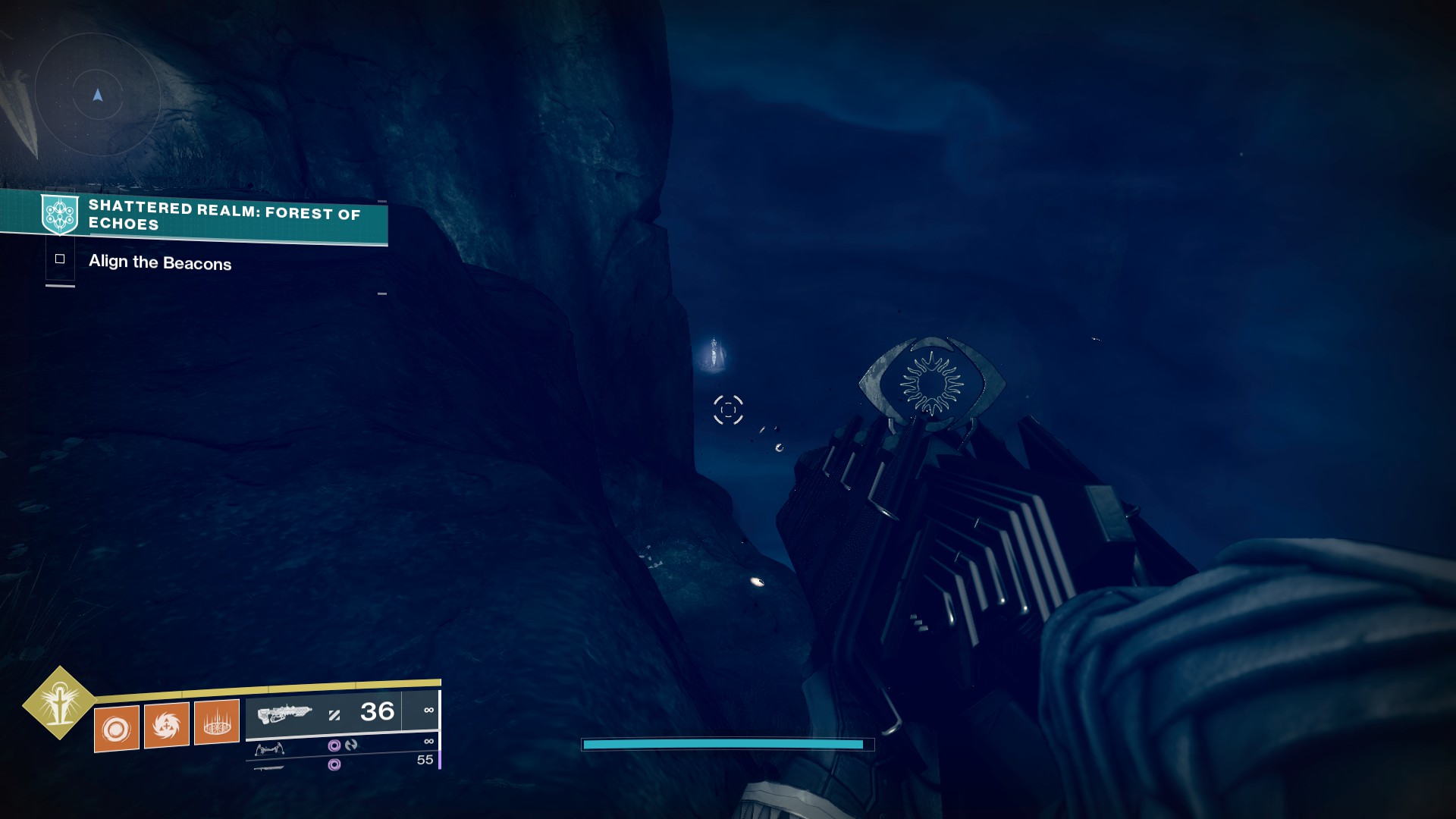 Alternately, you can head up the set of platforms behind and to the right of the Beacon until you reach their top, then look down to the island below. There are three ability pillars and an Ascendant Anchor there.