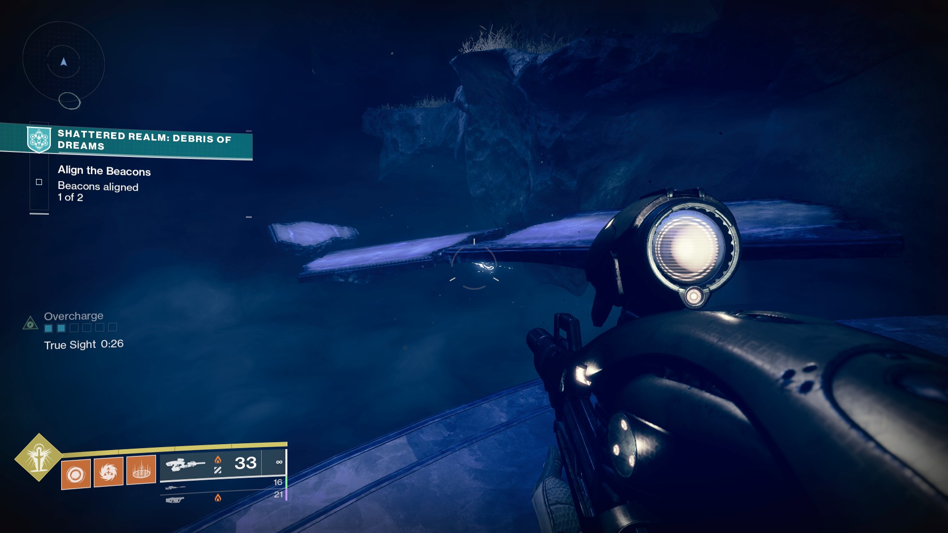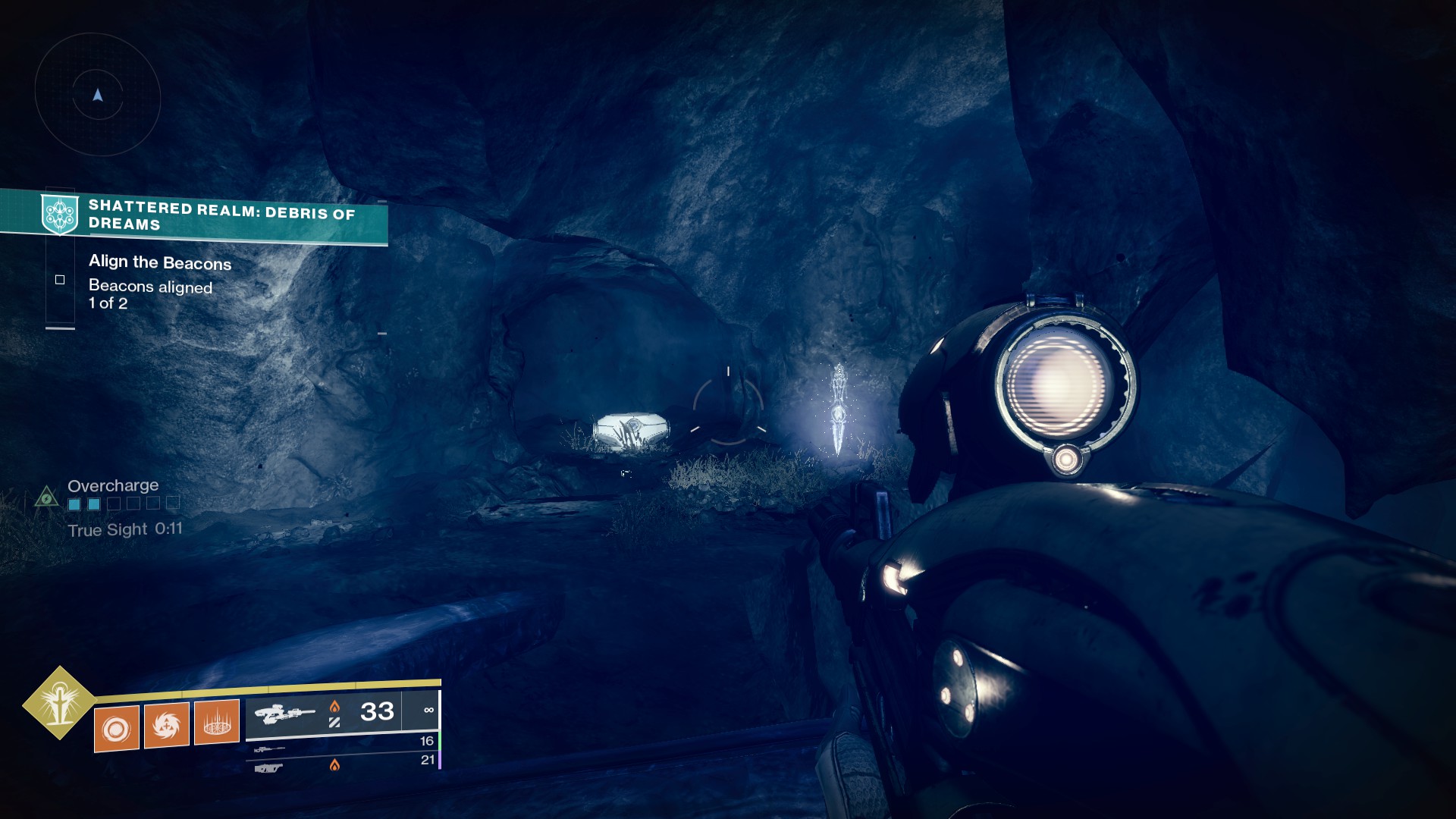 On your way to the second beacon, you’ll reach an area called The Ruins. Clear the area of enemies and head to the far right side of the area to see a True Sight pillar. Look down over the cliffside, and you’ll see a second pillar.