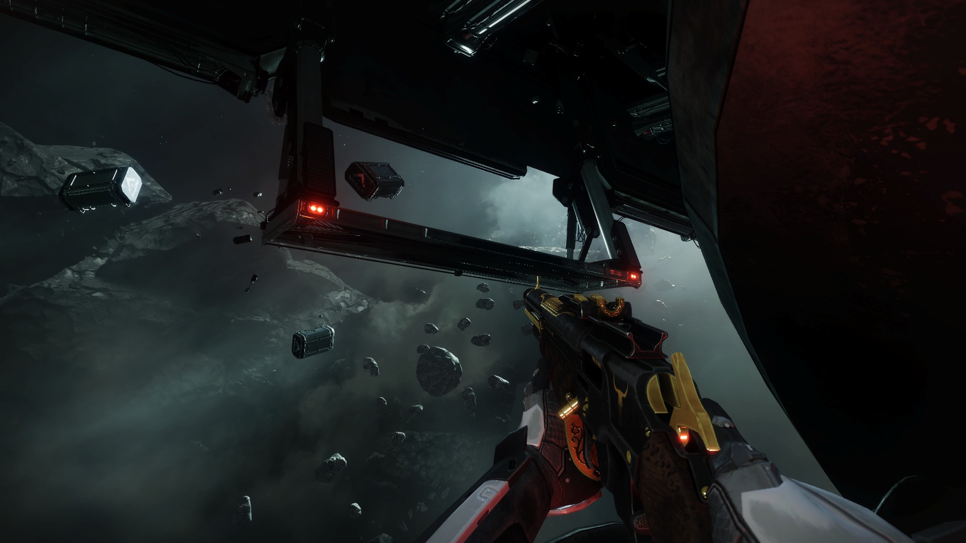 In a dark corner of space, the Cabal vessel Glykon floats aimlessly through a debris field. Once you load in, you’ll be at the back of a loading dock. Turn to your left, and you’ll see a red platform. Jump across.