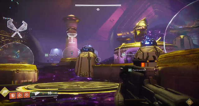 When Calus’ dark realm apparition has shot enough skulls, orbs will spawn that will take the dark realm fireteam back to the throne room. Now the real damage begins.