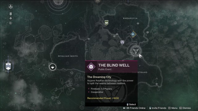 The Destiny 2 Blind Well activity is on the Dreaming City destination, so you’ll need to unlock access to that first and foremost. Once you have the Dreaming City unlocked, open its map from the Director screen and launch the activity from the spinning symbol on the right side of the menu.