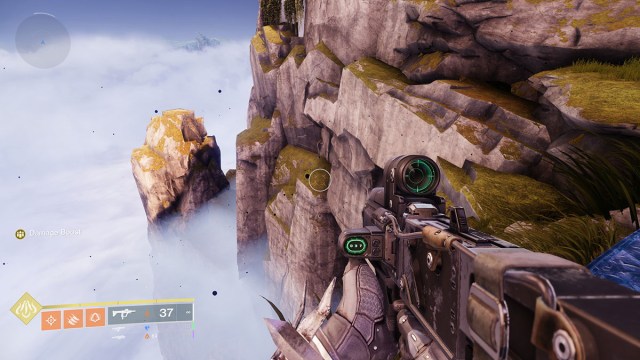 We’re still on the left cliffs, this time past the first set of waterfalls and underneath the circular platform at the end of the large bridge. The worm is on the side of the outcropping facing the chasm.