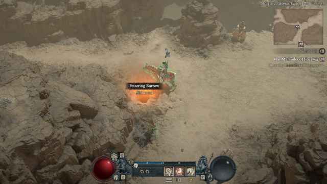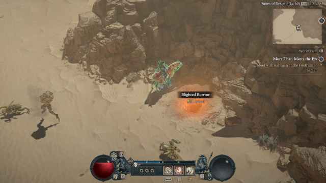The Blighted Burrow cellar is east of the Altar of Ruin. In fact, that’s the closest waypoint if you’ve cleared the Stronghold. You can also locate the mini-dungeon by heading northwest along the border of the Amber Sands from the Inferno dungeon.