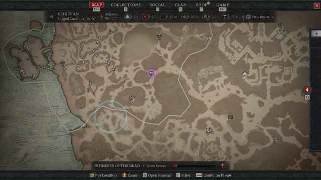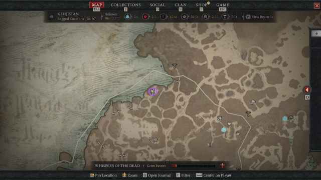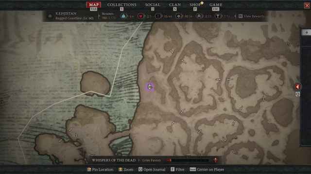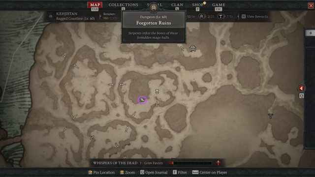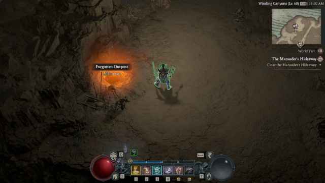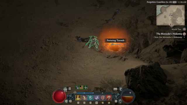 The Forgotten Outpost is located in the northeastern portion of the Ragged Coastline. It’s legitimately right along the coast, near a path that dead ends at an Altar of Lilith. I portaled to the Iron Wolves Encampment, then headed northwest to reach the cellar quickly.