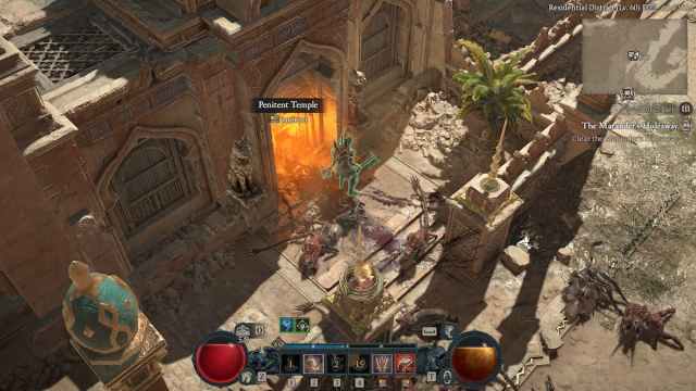Another difficult cellar to get to, portaling directly into the city will give you the most direct path. You’ll be battling through a number of mobs, so make sure to come prepared. Once there, head off to the southwest. The Penitent Temple is located on the ground, not the rooftops, of the farthest left path you can be on.