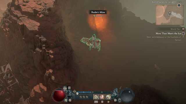 The Raider’s Mine is located closest to Tarsarak. Taking the west exit from the city will bring you to an area with an underpass, which is where you’ll find the cellar. It’s in the top part of the red-tinted area of the map.