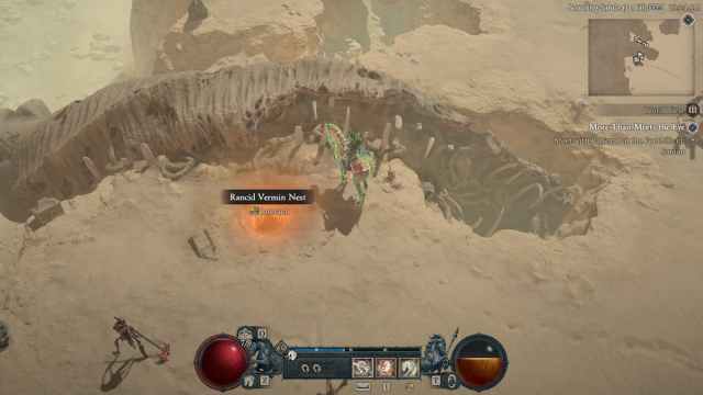 Heading toward Elias’ now abandoned temple, you’ll find the Rancid Vermin Nest snuggled into the second bend of the path. You’ll find it at the northwest part of the map, near two dead-end offshoots.