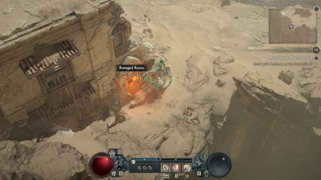 The Ravaged Ruins are to the east of Caldeum. While located close to the city, the easier waypoint is Tarsarak due to the number of Mother’s Chosen and demons in Caldeum. Head out of Tarsarak to the Road of Alcarnus, where you’ll find this cellar in a small offshoot.