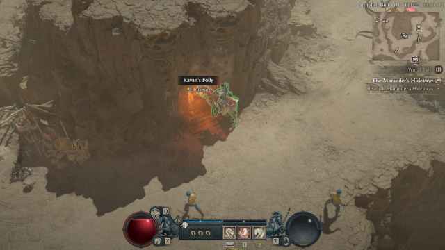 Just south of Gea Kul, you’ll find another Marauder’s Hideaway. Heading out the south exit, go all the way to the edge of the map, then head east. You’ll find the cellar entrance snuggled on the left side of the canyon wall.