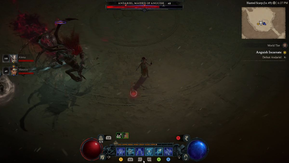 Andariel is the final boss of Act 4. You’ll know you’re about to fight her when you’re in the Forsaken Chapel in northeastern Kehjistan and Taissa goes outside for some air. Neyrelle will say she can’t see Taissa anymore and run outside to find her. Once you follow Neyrelle outside to make sure Taissa’s okay, you’ll run into Elias, who will summon Andariel. Make sure you top off your options at the Healing Well before you follow Taissa outside. Once you talk to Neyrelle, there’s no going back.
