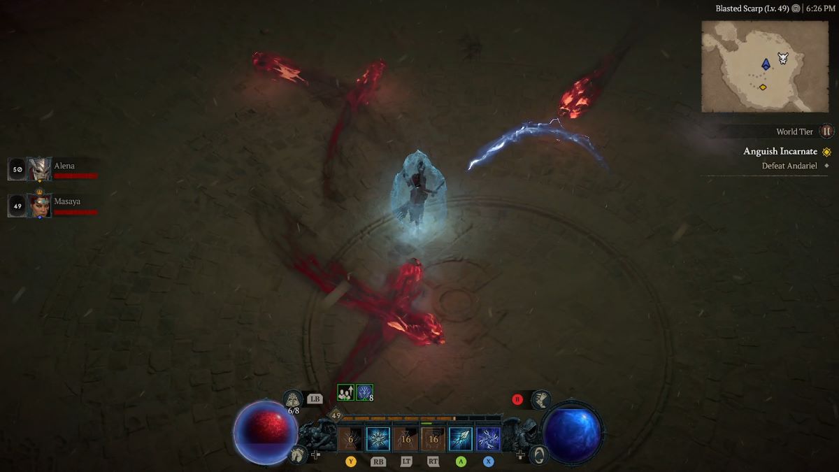 The good part is Andariel is stationary during these attacks, so if you avoid them, you can just whale on her. Eventually, she’ll back off and disappear into the sandstorm. When she does, she’ll summon fireballs that will chase you around the area. They do a lot of damage, so be sure to avoid them or use a defensive ability to increase your survivability. Once you get her down to about 75% (or enough time passes), she’ll go into Phase 2.