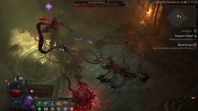 - Avoid the bloody tentacles as you fight the Blood Bishop.