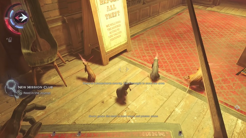 Billie is an accomplished thief who needs some extra tools to get the job done, so breaking and entering it is! Listening to rats usually gives clues about how to break into the game’s many hidden areas, and it’s no different here.
