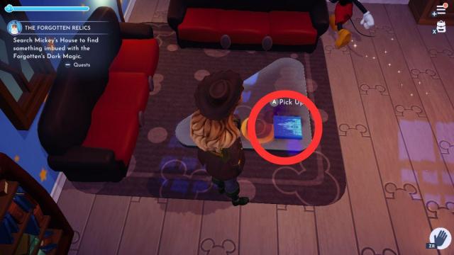 - First, you’ll need to head to Mickey’s house to find The Forgotten Storybook. I found the Storybook on Mickey’s coffee table. You can see what it looks like in the image above.