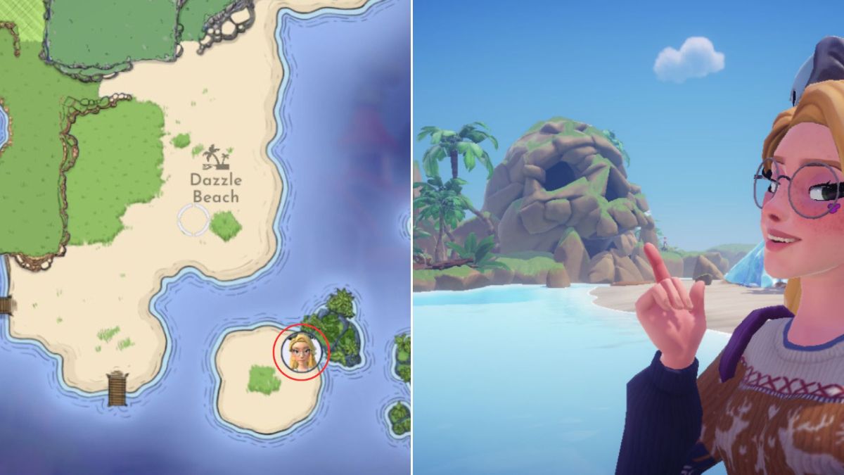 You will be instructed by Donald Duck to place the Homing Beacon on Skull Rock. Skull Rock can be found near the dock on Dazzle Beach, and we have included a map and an image below to help you locate it:
