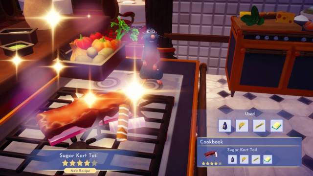 After you’re done decorating, you’ll need to talk to Vanellope. She’ll tell you she needs a race kart — no surprise there! Vanellope will give you fudge, but you’ll need to purchase the remaining ingredients from Remy’s shop, or the correct Goofy stall. All dairy products are available in Remy’s shop, Wheat is at the Peaceful Meadow stall, and Sugarcane is at the Dazzle Beach stall.
