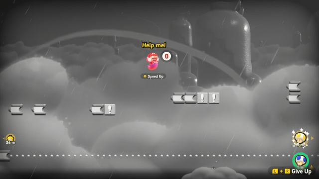 You can’t physically bump into these other players, break their blocks, or defeat foes in their world. However, you can interact in other ways. If you get KO’d, instead of restarting the course, you’ll become a ghost. This lets you get rescued by dashing over to a nearby player, and once you touch them, you’ll revive. Thankfully, as a ghost you can pass through walls and floors, and another player might already be running to you to help out.