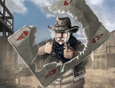 Jon is in the 8 of Spades slot. He doesn’t fight near as well as any of the other combat monsters that sit in that spot, but he could possibly be one of the most effective characters at stretching your opponent thin. After using his horse, Jon may stand the horse up and use him again. It seems simple enough, but this means Jon won’t have to boot until the third time he has to move. Considering that most dudes will be booted after 1 move, Jon clearly has the mobility advantage. Run him over to an opponents important deed to draw one of his dudes out. Then run back home. His dude will be booted while Jon will be able to use his horse again. Combine Jon with Good Stiff Drink or Fresh Horses for an incredible number of moves in one turn.