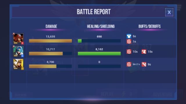 If you’re having a hard time choosing between characters, take a close look at what all of their skills do, and weigh them against each other in overall team comp. A great way to help with this is by checking the Battle Report after each scenario or match. These will show you how each champion performed and whether or not they’re working well together.