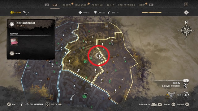 The Matchmaker side quest will appear around the time you reach Let’s Waltz! in the campaign (at least that’s when I first noticed it, so check around then). It can be found about 90 meters east of The Holy Trinity Metro Station (Bazaar) at a Survivor Bakery.