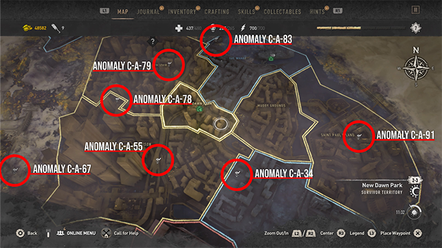 - Newfound Lost Lands — GRE Anomaly C-A-56 (Rank 5): This one can be found later in Dying Light 2 when you gain better access to Newfound Lost Lands. It’s in the northern portion of the zone, near the border with Lower Dam Ayre. It’s on a rooftop east of what seems to be a bus station. Go roughly 190 meters south/southwest of the South Loop Metro.
