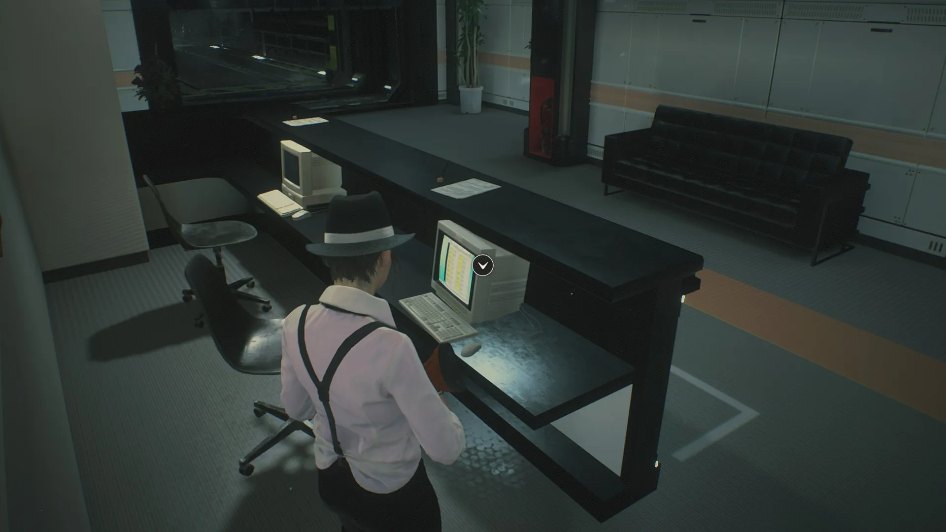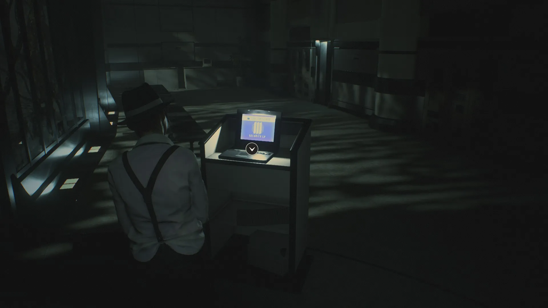 Once you’ve got a level 3 ID Wristband, check the computer in the podium in the Presentation Room of the laboratory’s East Area. (This may be slightly easier for Claire than for Leon, as Claire isn’t being chased out of the lab.)