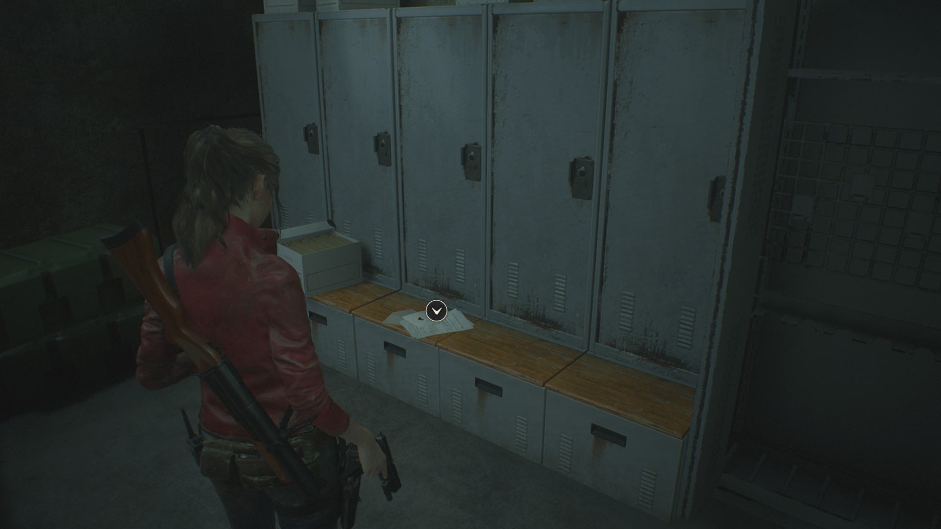 Posted up on a wall in the corner of the Men’s Locker Room on the second floor of the RPD. (This is always here, even on a 2nd Run when it’s not actually sitting next to the first Portable Safe.)