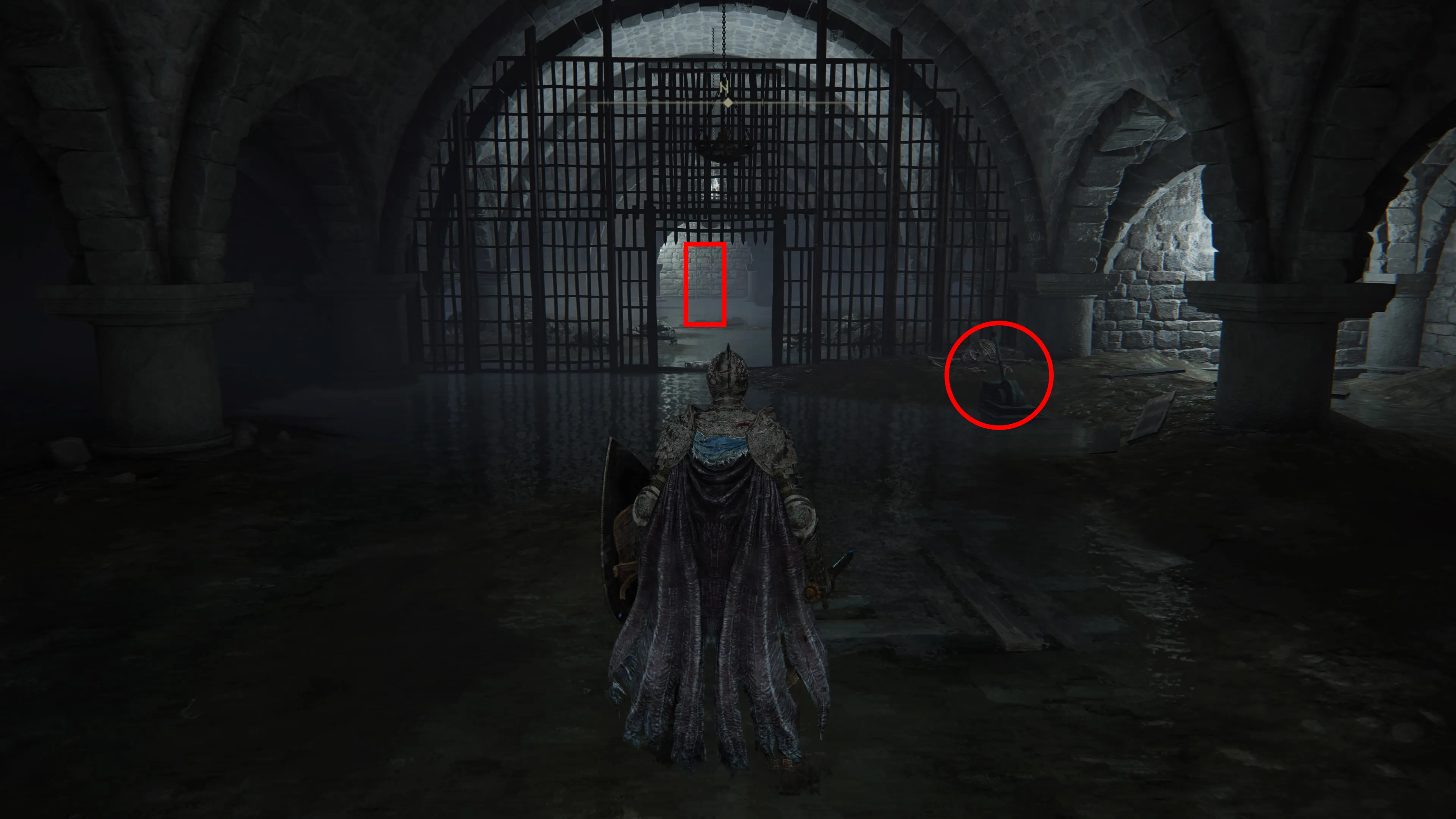 Go into the next room of the Black Knife Catacombs, and defeat the skeleton archer on the right, then the skeleton warrior that spawns on the left. Drop down the hole inside the archway on the right side of the room, where the skeleton archer was. Turn around when you land, and pull the lever at the statue to open the door to the Cemetary Shade boss near the beginning of the Black Knife Catacombs.